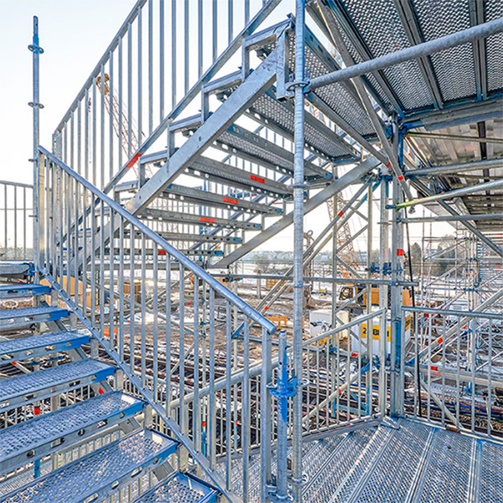 With internal access solutions, modular stairways, Allround scaffolding comfort stairs, and stairway towers, Layher delivers a variety of construction access solutions to fit your project needs. Layher scaffolding is versatile, reusable, and built to last with galvanized products Made in Germany.
